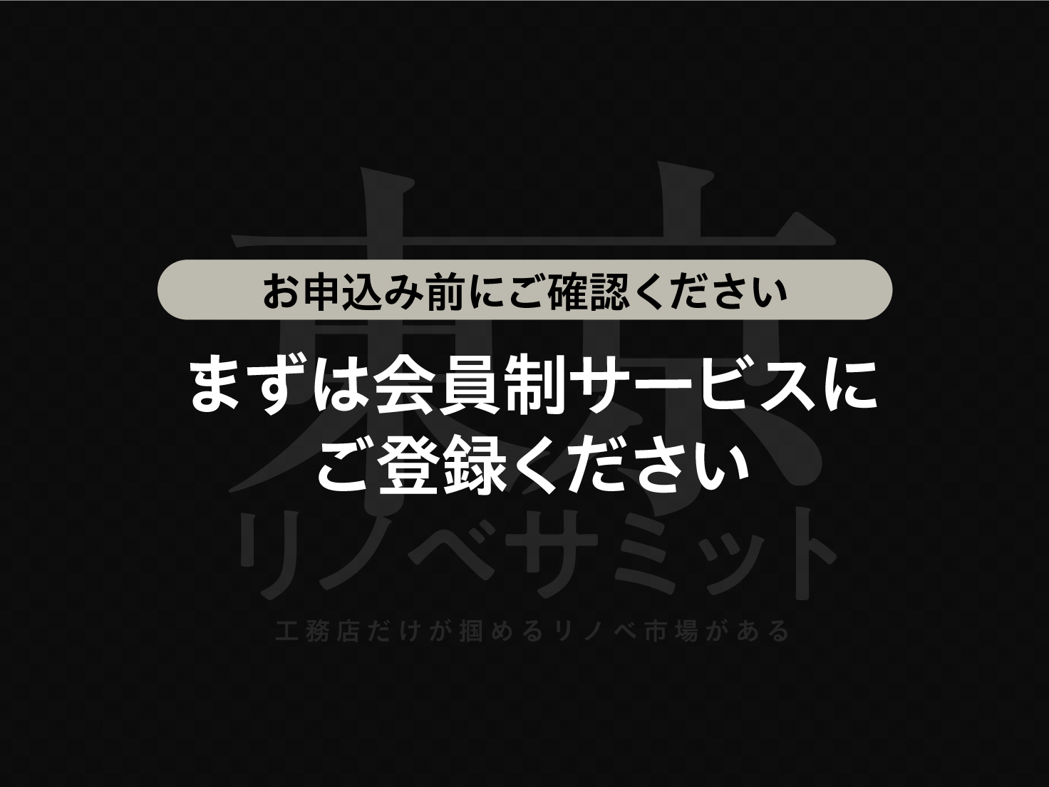 東京リノベサミットへの参加申し込みには、会員制サービスの登録が必要です。(登録無料)